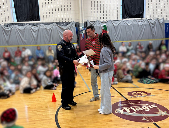 Officer David Kozuch was honored as an “Honorary Creeker” at Mill Creek Elementary.